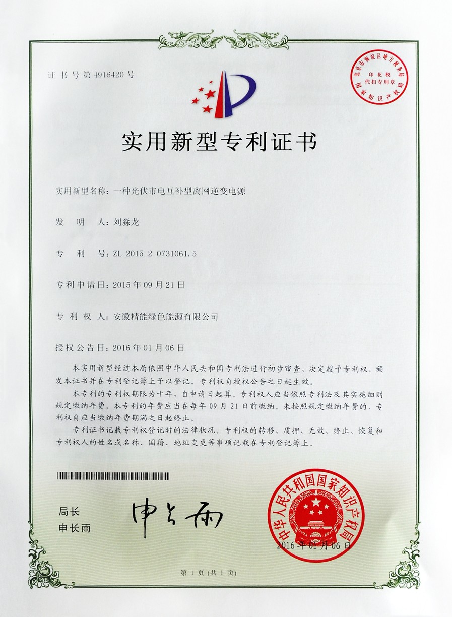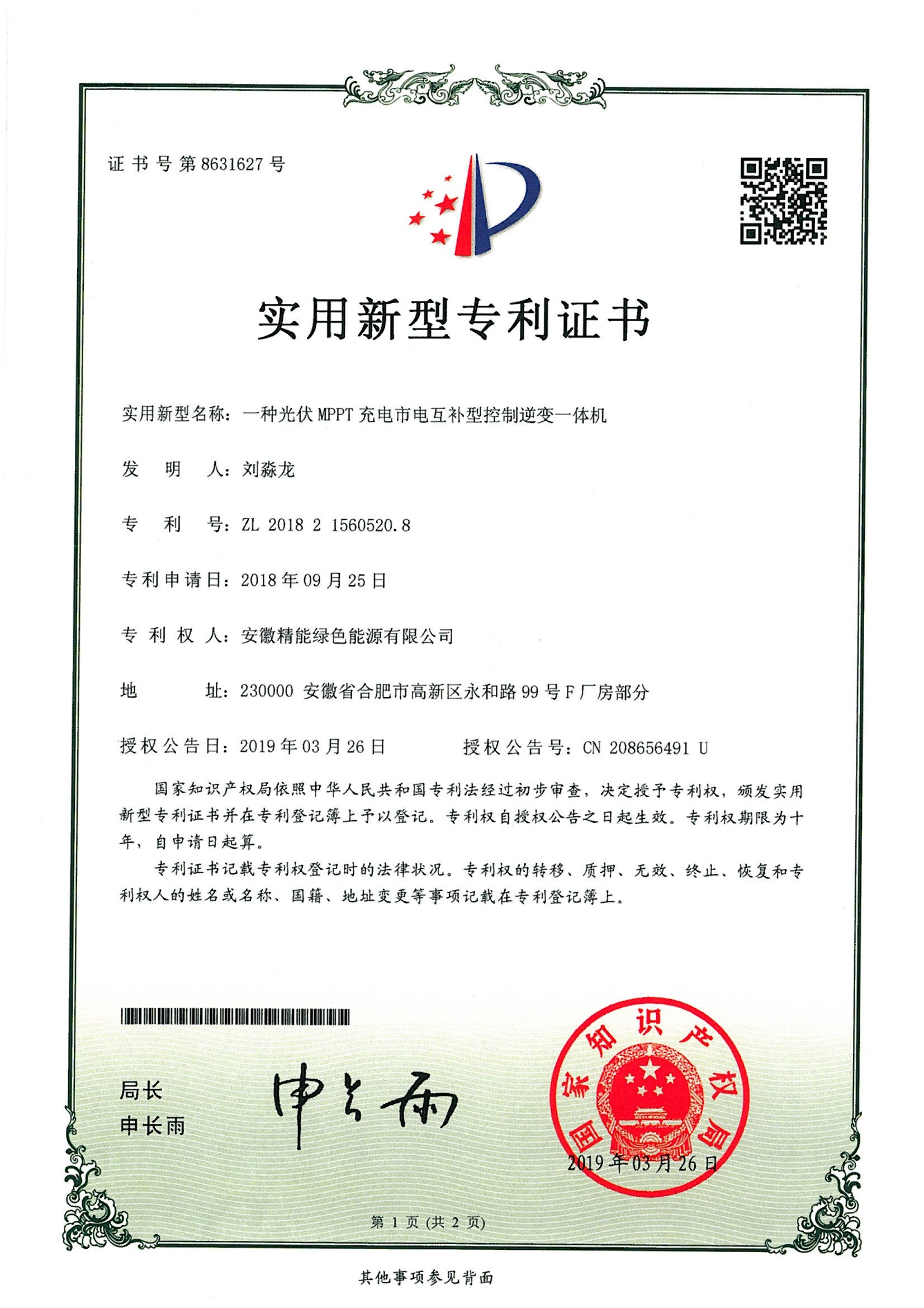 安徽精能綠色能源有限公司,坐落在科教之城安徽省合肥市,地處于國(guó)家高新技術(shù)開(kāi)發(fā)區(qū),是一家專(zhuān)注于太陽(yáng)能、風(fēng)能等可再生能源電源產(chǎn)品研發(fā)、生產(chǎn)、銷(xiāo)售和服務(wù)的高新技術(shù)企業(yè)。主要產(chǎn)品有純正弦波逆變器、太陽(yáng)能控制器和風(fēng)光互補(bǔ)控制器等,并提供太陽(yáng)能發(fā)電系統(tǒng)、太陽(yáng)能路燈系統(tǒng)的設(shè)計(jì)、生產(chǎn)與安裝調(diào)試等服務(wù) 精能公司從2010年成立以來(lái),獲得了國(guó)家高新技術(shù)企業(yè)及安徽省軟件企業(yè)等榮譽(yù)資質(zhì),并先后取得了二三十項(xiàng)知識(shí)產(chǎn)權(quán)專(zhuān)利證書(shū)及軟件著作權(quán)證書(shū),通過(guò)了歐盟CE認(rèn)證及ROHS認(rèn)證,成為合肥市科技小巨人培育企業(yè)。公司在2016年注冊(cè)了“精能綠能”品牌商標(biāo)(注冊(cè)號(hào):第15721729),打造并成為能源...